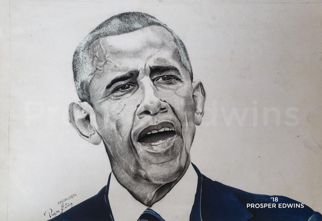 this piece was created with graphite and charcoal pencils, combining precision and artistry to depict a significant historical figure.the image commemorates the first Black President, capturing not just his likeness but also the soul of his revolutionary leadership.the rich tones and intricate details convey the weight of his accomplishments, emphasizing the courage, resilience, and dignity that have inspired millions around the world.the use of graphite and charcoal highlights the depth and complexity of his expression, highlighting the weight of his obligations and the optimism he represents.each layer of shading and texture pays homage to the legacy of a leader who pushed boundaries and redefined what was possible, leaving an unforgettable mark on history.